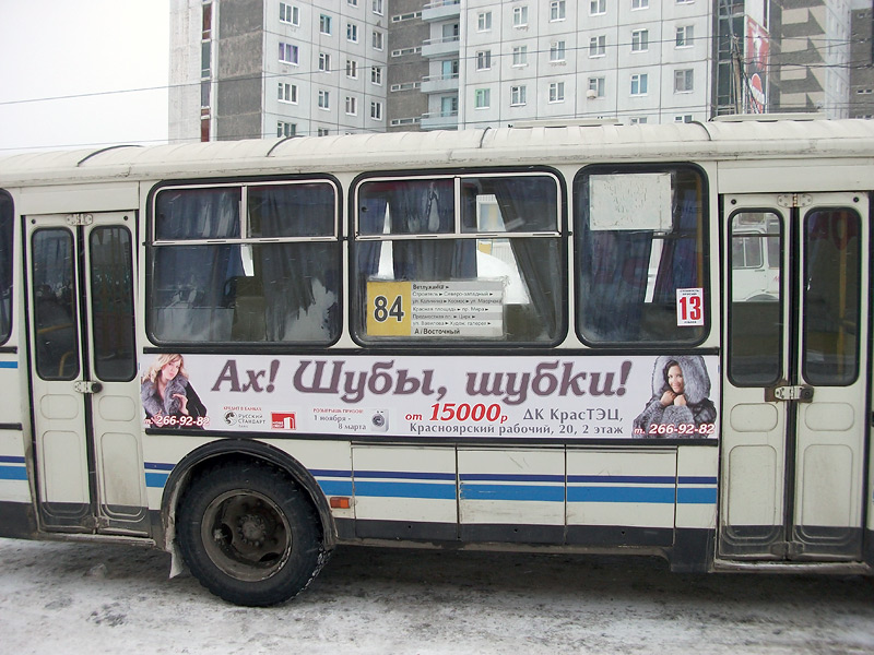 Зима вступила в свои права. Самое время покупать теплые и красивые шубки. Что бы рекламодателю выделиться среди конкурентных предложений, необходим нестандартный и эффективный подход к выбору рекламного носителя. Так, с начала декабря, по городу курсируют 10 автобусов типа ПАЗ с рекламой доступных шубок. Рекламодатель предлагает Красноярцам и гостям нашего города меховую верхнюю одежду с помощью такого рекламного формата как Стоимость трехмесячного размещения на 10 автобусах составила всего 50 000 руб. с учетом производства. По проекту предоставлена рассрочка на все 3 месяца размещения, ежемесячный платеж составляет 10 000 руб. Каждый день рекламу на автобусе могут видеть примерно 50 000 — 60 000 чел., что говорит о высокой эффективности данного рекламного носителя. |