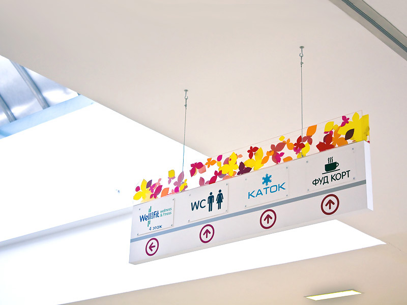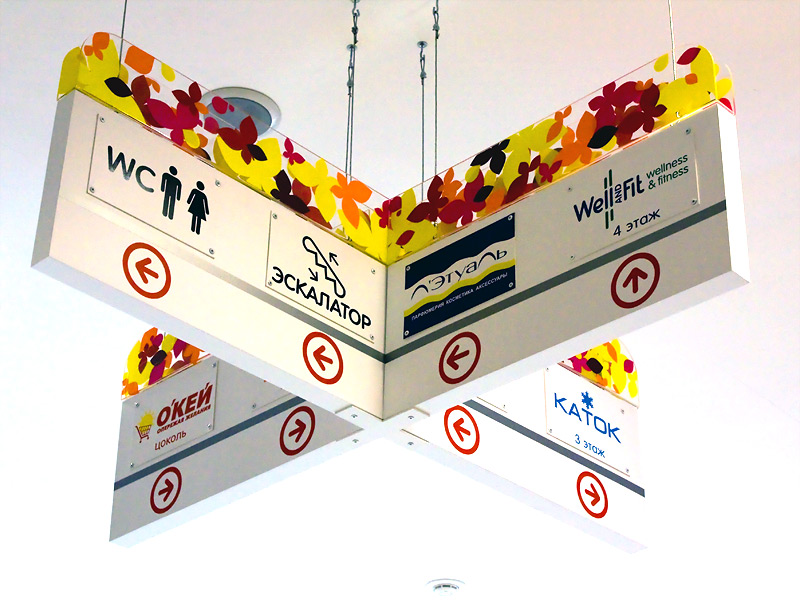 Компанией «Ориентир-М» для ТРЦ «Июнь» была разработана и изготовлена подвесная навигация, состоящая из четырехсторонних и двусторонних акриловых планшетов. Простые и вместе с этим эффектные указатели дополнили картину приветливого и позитивного торгового центра. Планируется, что данный вариант навигации будет утвержден для всей сети торговых центров. |