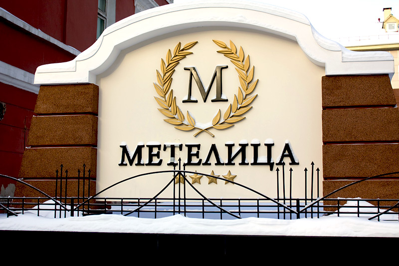 Вывески для фасада и стелы гостиницы «Метелица» были выполнены компанией «Ориентир-М» в соответствии с дизайн-проектом реконструкции здания. Буквы «Метелица» и элемент «Венок» изготовлены из трех слоев различно отфрезерованного и совмещенного пластика. Зачистка боковин осуществлялась вручную. Облик фасада получился очень стильным и элегантным за счет простоты и аккуратности рекламной конструкции. |