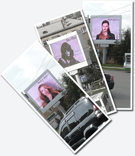 С первого сентября 2010 года, такие известные бренды одежды как Мах Маrа, Max & Co, Marina Rinaldi, возобновили сотрудничество с направлением "Светодиодные экраны" компании "Ориентир-М". На наших щитах 3*6 данные бренды размещаются постоянно в районе ул. Копылова и ул. П. Железняка, на основе макетов были произведены три видеоролика. Размещение их на экранах расположенных в культорно-историческом и новом торгово- деловом центре города, усиливает эффект от рекламной кампании, за счет динамичного изображения, яркости носителя и расположения экранов в ViP -местах.
