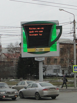 Эту небольшую и удивительную новость хочется начать с вопроса Вам, дорогие коллеги: сможете ли Вы назвать хотя бы несколько примеров удачной не стандартной рекламы в Красноярске? Такой чтобы «уух и ах!»: запоминающейся и яркой. Будьте уверены, теперь сможете! Возможности использования светодиодных экранов РА «Ориентир-М» поражают воображение, а сами экраны в очередной раз становятся объектом рекламного креатива. Хороший пример такого не стандартного использования экранов демонстрирует компания «Kraft Foods Rus», владелец торговой марки «Jacobs Monarch». В преддверии нового года в компании была разработана и спланирована акция «Согрейте близких теплом добрых слов»: уникальный способ выразить свои чувства тем, кто вам не безразличен. Основным рекламным носителем стали светодиодные экраны в 14 городах страны. В Красноярске исполнителем этой креативной идеи выступило РА «Ориентир-М», на экране которого, в начале этого месяца, и была установлена конструкция в виде фирменной чашки-производителя кофе. Такое тесное сотрудничество федеральных компаний с рекламным агентством «Ориентир-М» еще раз подтверждает эффективность светодиодных экранов. Экран «Центральный», который стал главным рекламным носителем компании «Якобс» в г. Красноярске позволит охватить не менее 130 тысяч человек ежесуточно, что в общей сумме составит около 4 миллиона контактов с целевой аудиторией.