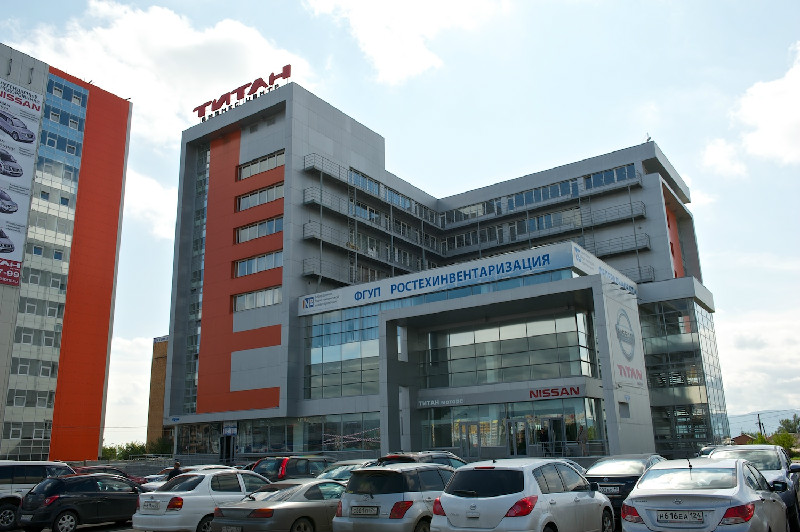 Компанией "Ориентир-М" для Бизнес центра "Титан", находящегося на пересечении улиц Взлетная и Шахтеров, была изготовлена световая крышная установка. Эта одна из первых в городе работ, где на такой высоте для засветки текста использовались светодиоды вместо привычного неона. В словах "Бизнес центр" - диоды белого свечения установлены по контуру букв, а для "Титана" использовалась внутренняя засветка. Вывеска получилась яркой, привлекающей внимание. Буквы "Бизнес центр" сделаны черными для достижения контраста со светлым небом днем и подсвечены белым для достижения той же цели - ночью. Крепление вывески к крыше осуществлено с помощью бетонных блоков – утяжелителей. Такой способ был выбран из-за покрытия - мягкой кровли, закрепиться к которой нельзя каким-нибудь иным путем.